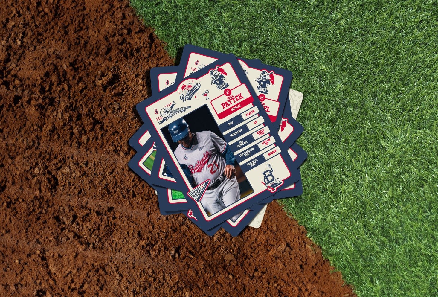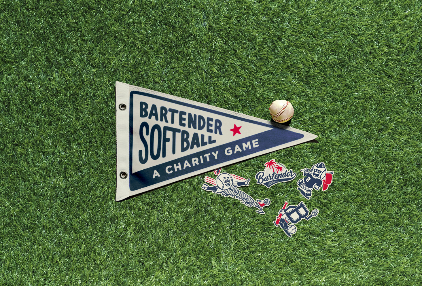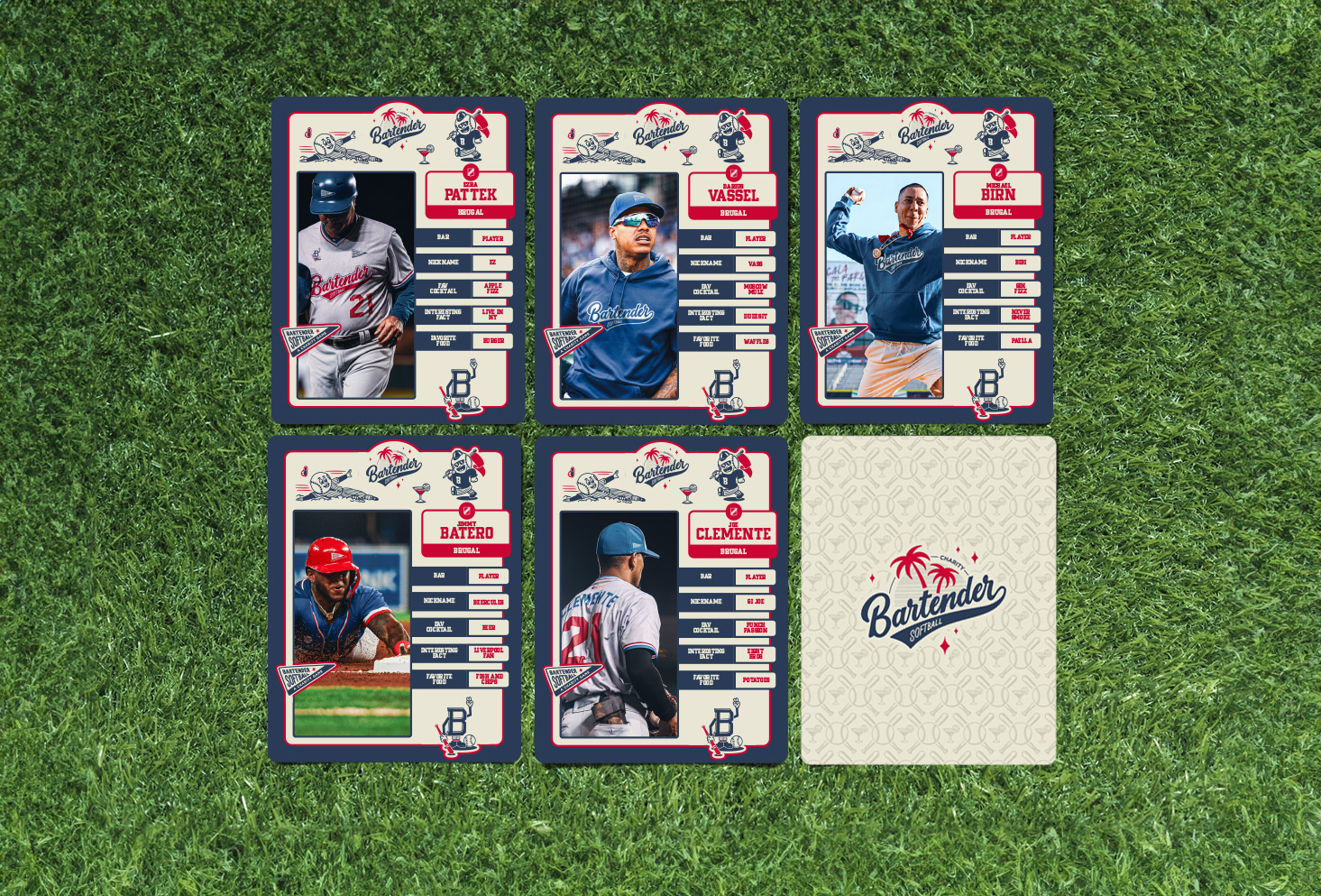 Création de l'identité visuelle (logo, illustrations, cartes à collectionner, tshirts, etc) du Bartender Softball, qui est une compétition de baseball à but caritatif qui se déroule à Miami et à Tampa (Floride) en Avril 2024.