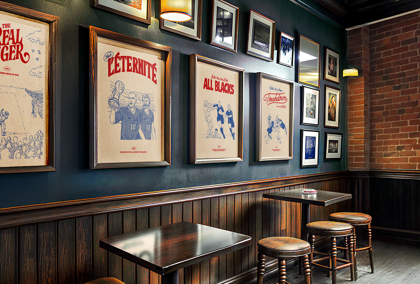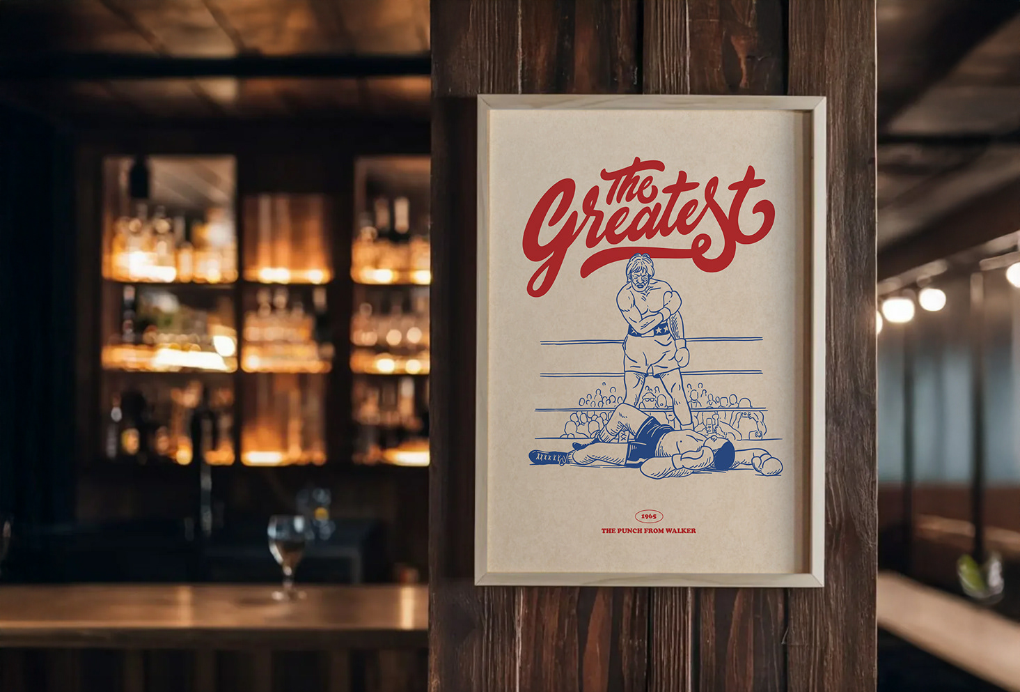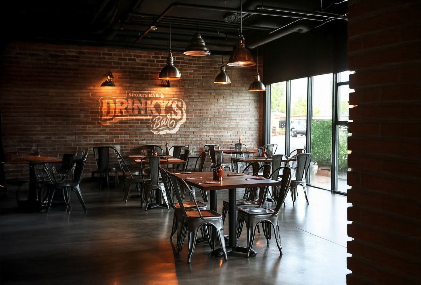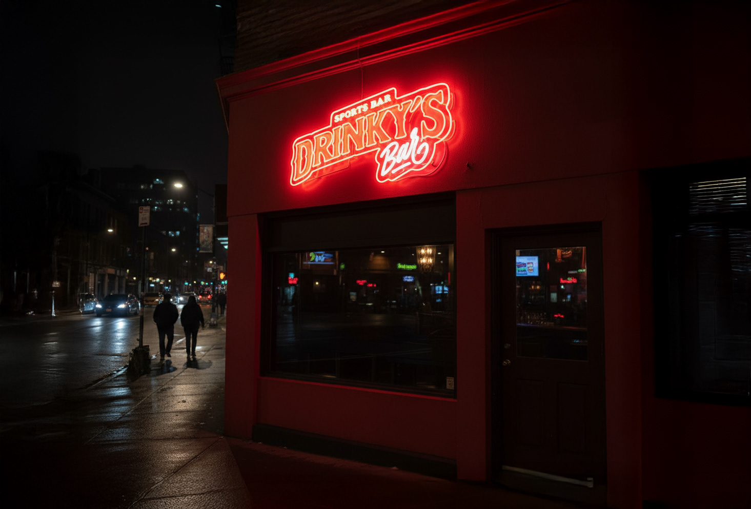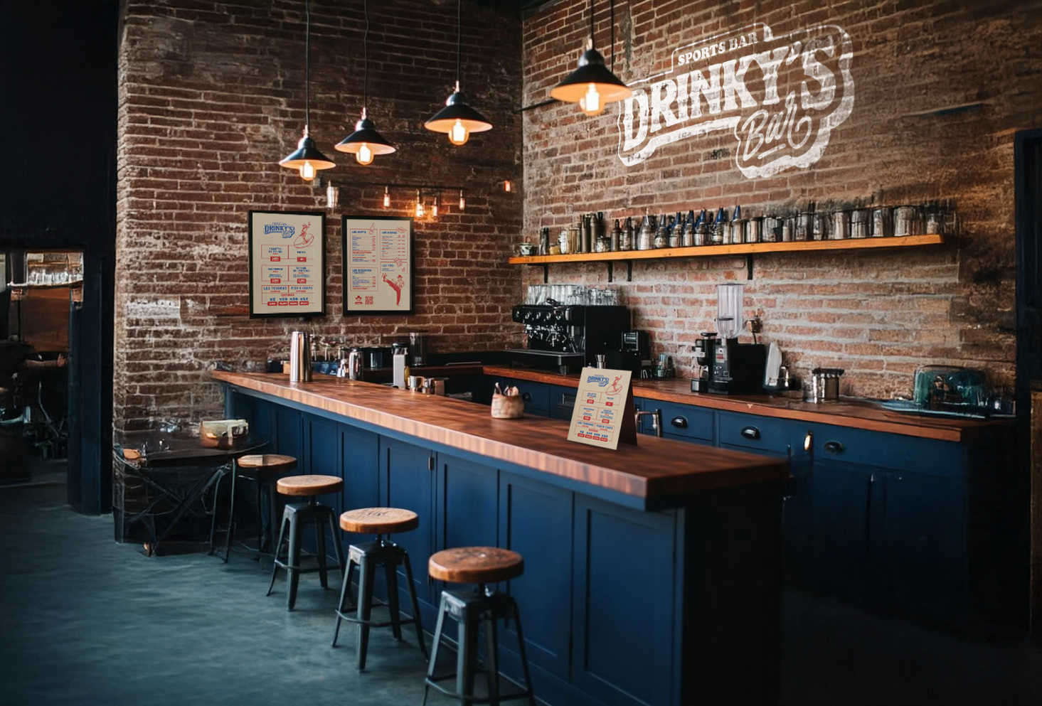 Création compléte de l'identité visuelle du Drinky's Bar (logo, illustrations, menus, etc..) qui est un bar situé à Avignon. Le Drinky's est un bar à vocation sportive, et à de fortes réferences américaines, nottament aux dimanches en famille devant Walker Texas Ranger, qui est l'icone de cet établissement.