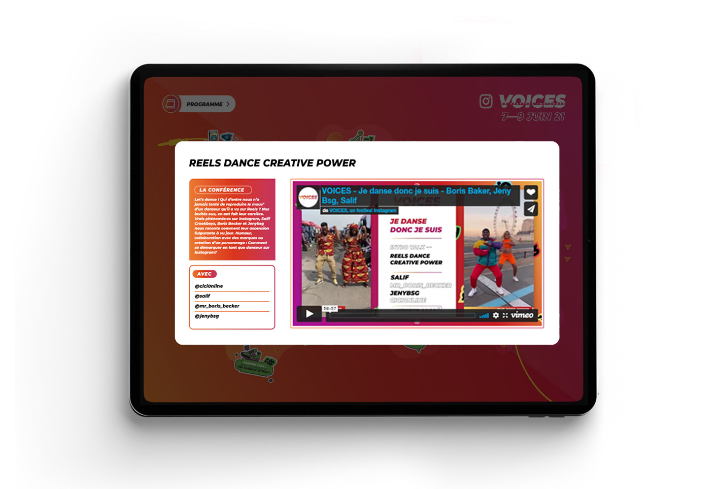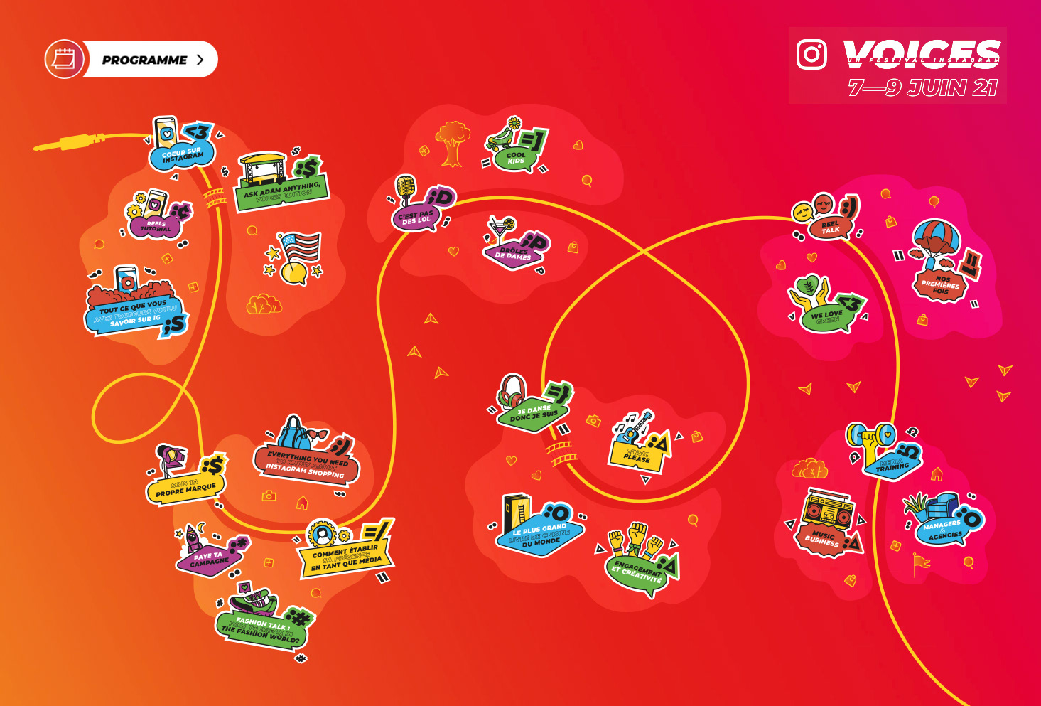 Réalisation du template et des icones du festival Voices, qui est un festival crée par Instagram dédié aux créateurs de contenus, du 07 au 09 juin 2021. En collaboration avec David M & Boomerang Agency