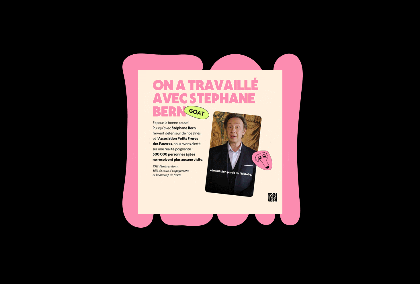 Création de l'identité visuelle de Foolish, qui est une agence de creation globale axée sur la «social culture» et faisant partie du groupe "Hungry and Foolish", qui propose de « foolish ideas for hungry brands ». Foolish accompagne les marques en publicité, social media, influence, achat media digital et branding. Réalisation de la direction artistique par le Studio Bingo.