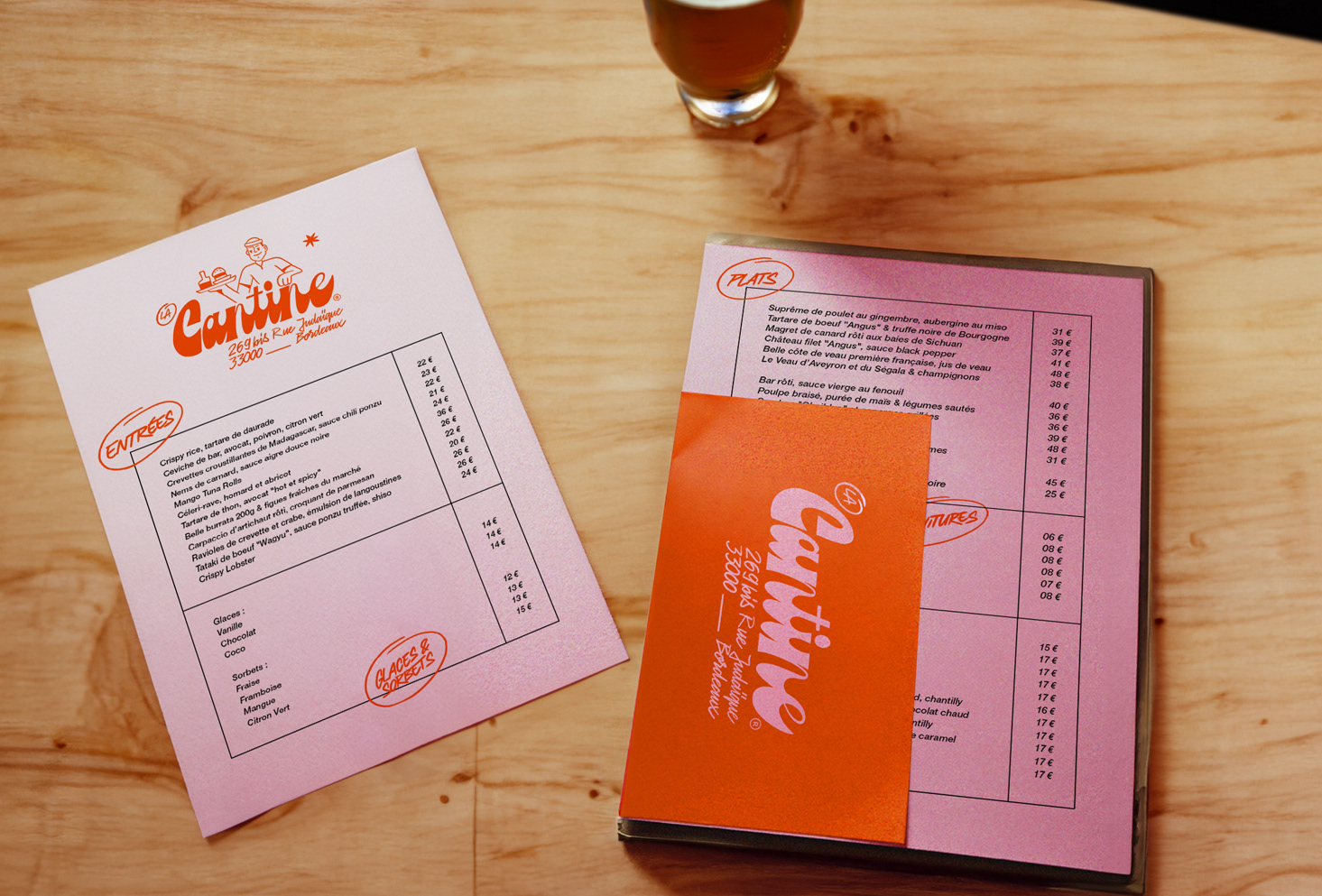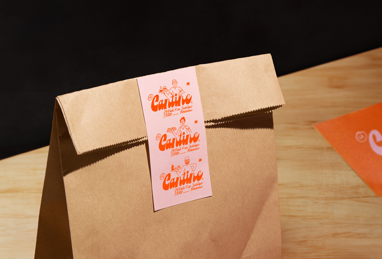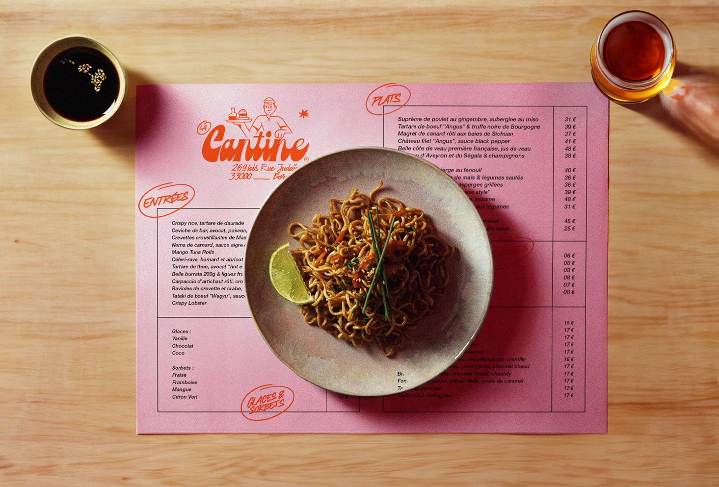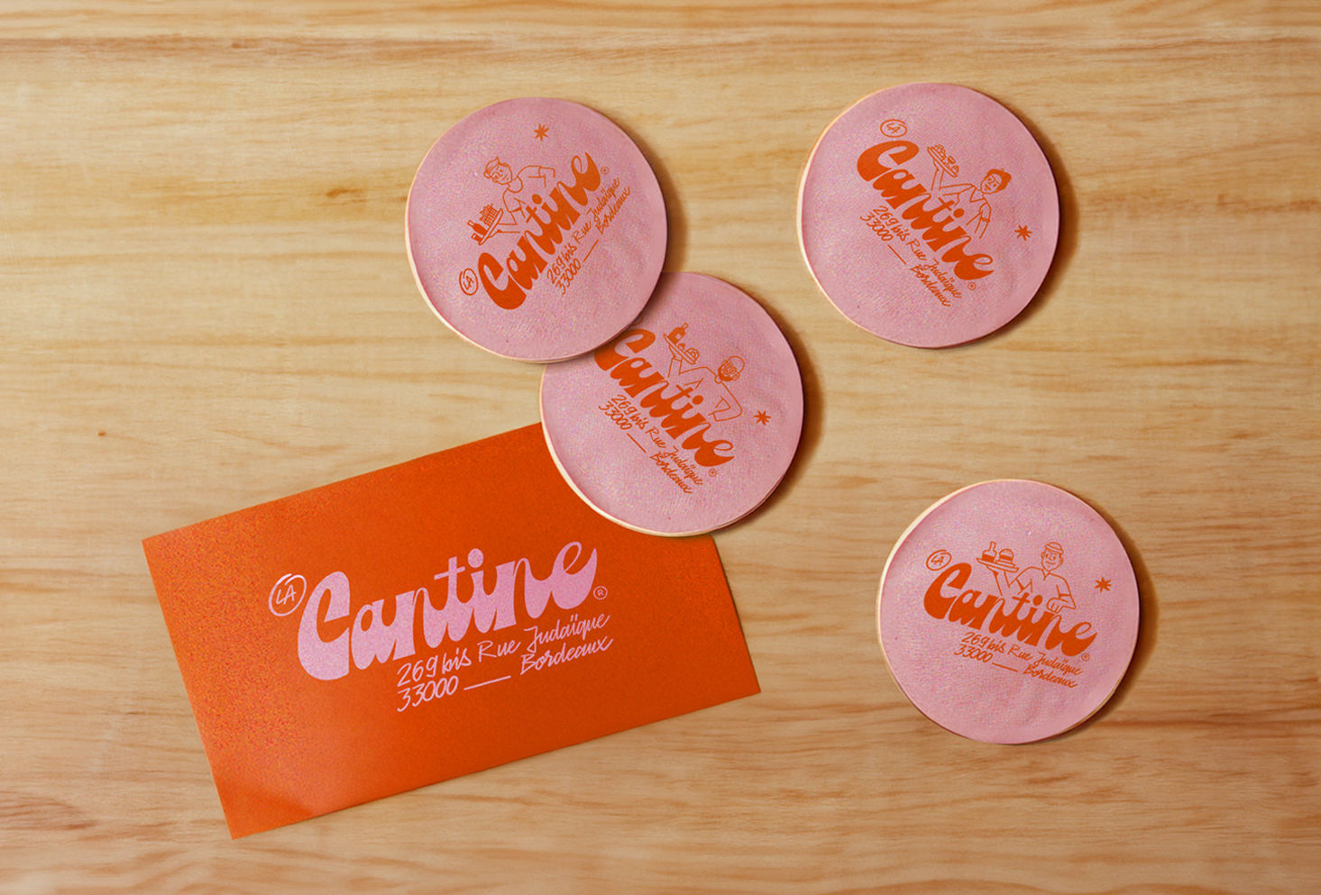 Création de l'identité visuelle de La Cantine, restaurant situé à Bordeaux qui met à l'honneur les spécialités de la région grâce à des produits locaux.