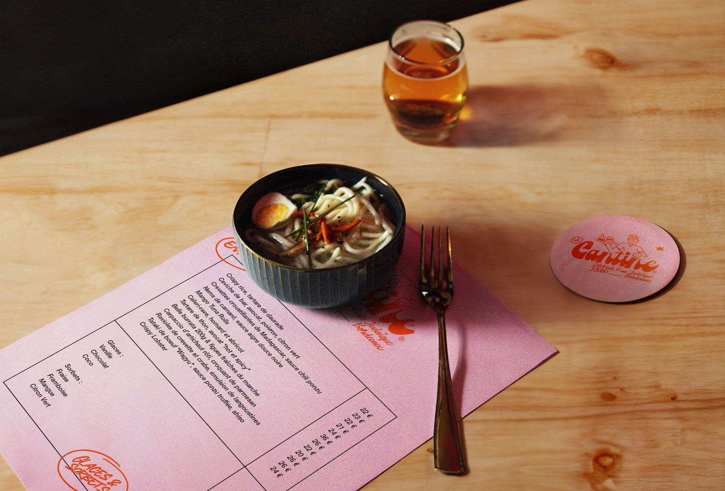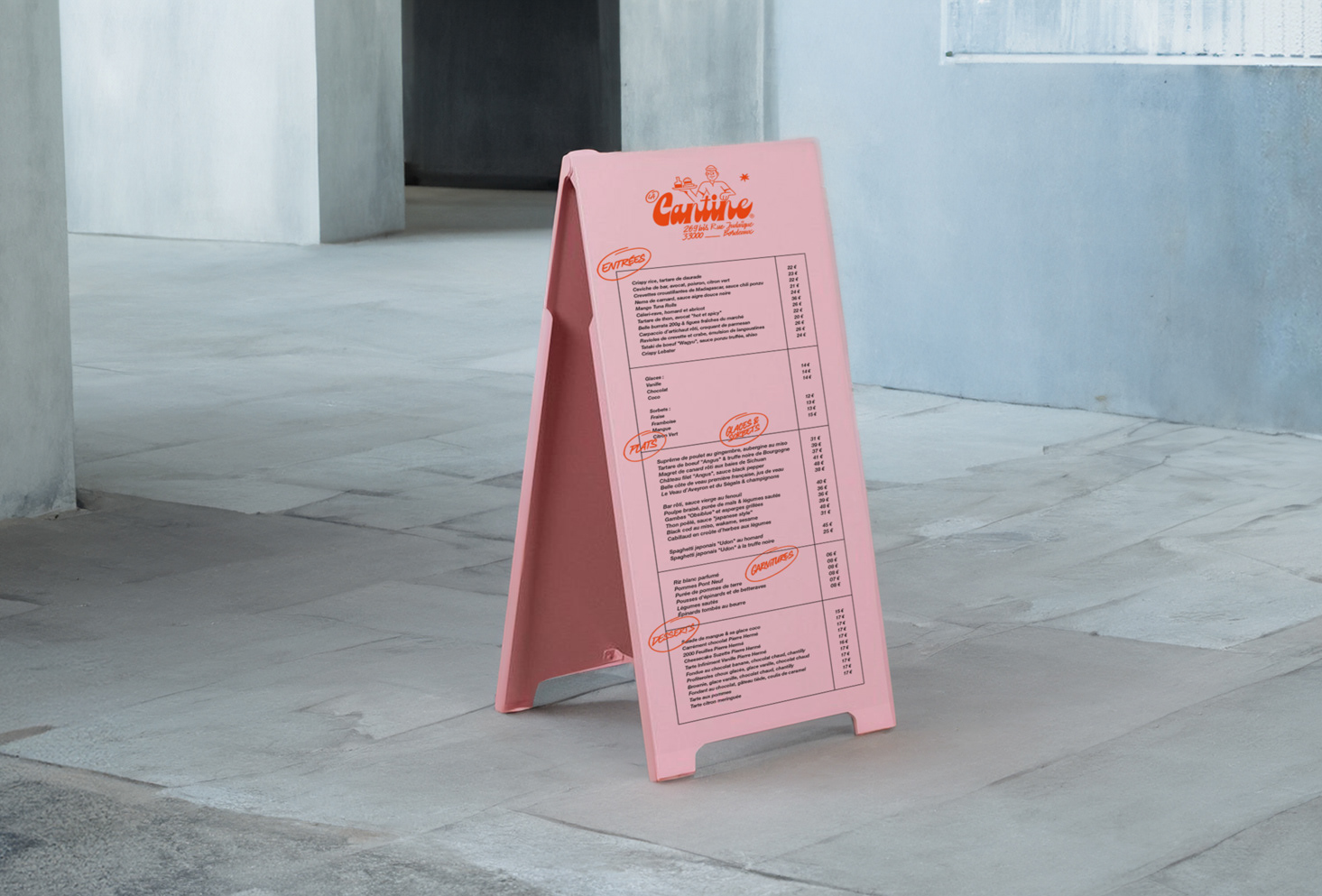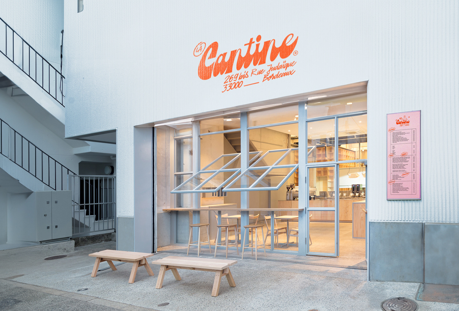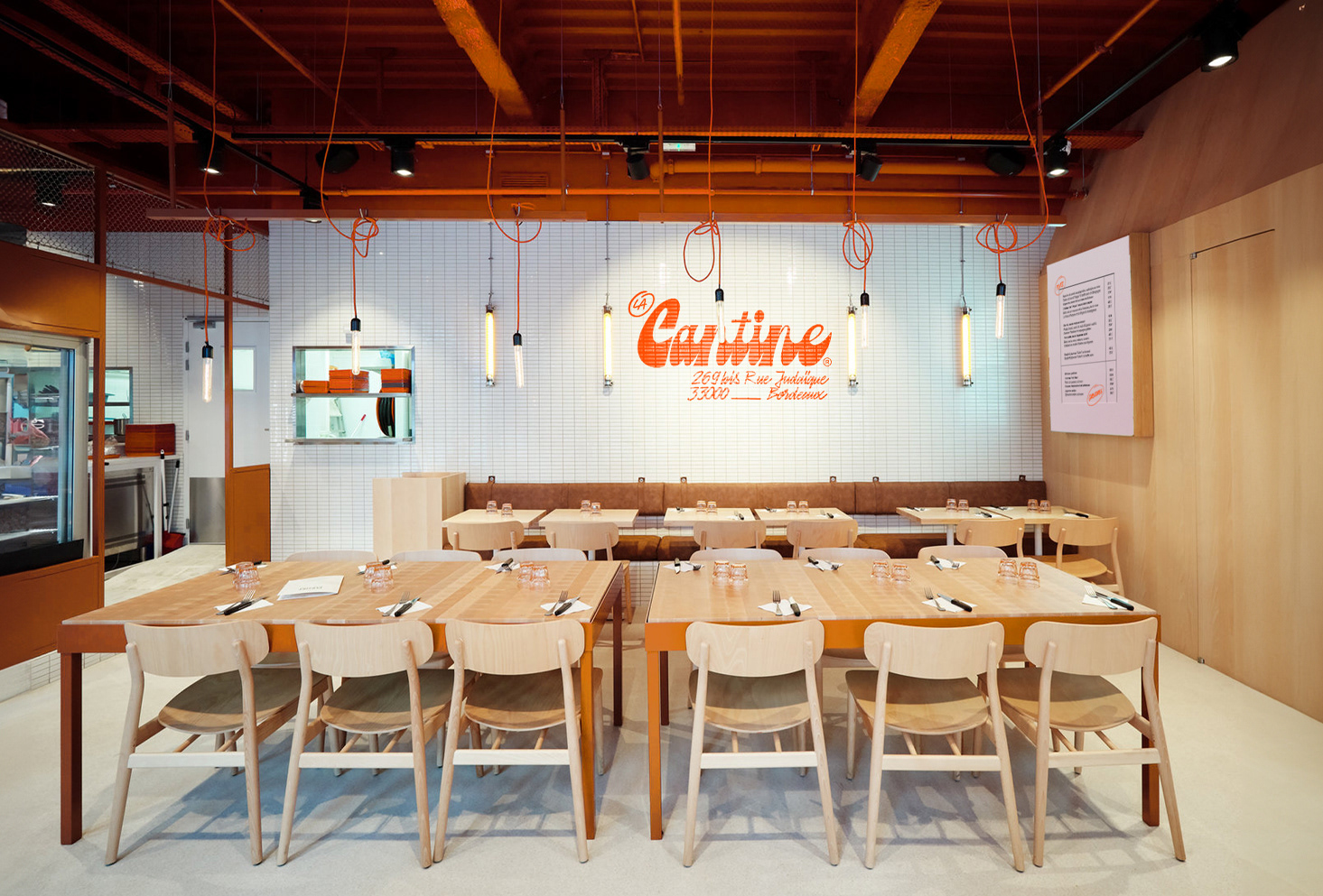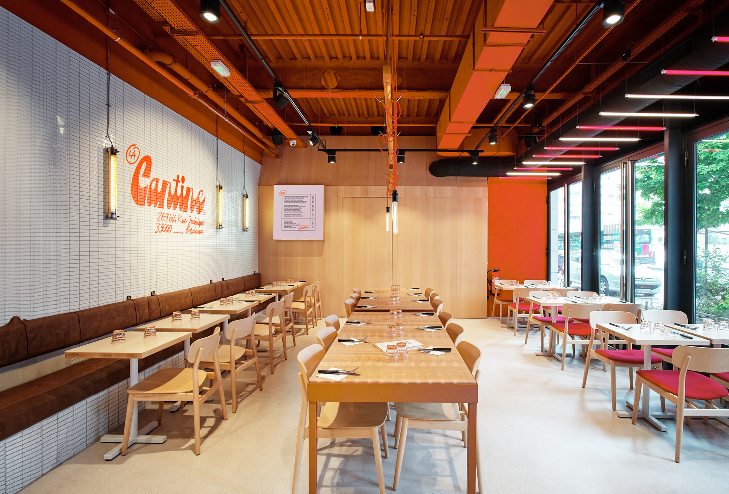 Création de l'identité visuelle de La Cantine, restaurant situé à Bordeaux qui met à l'honneur les spécialités de la région grâce à des produits locaux.