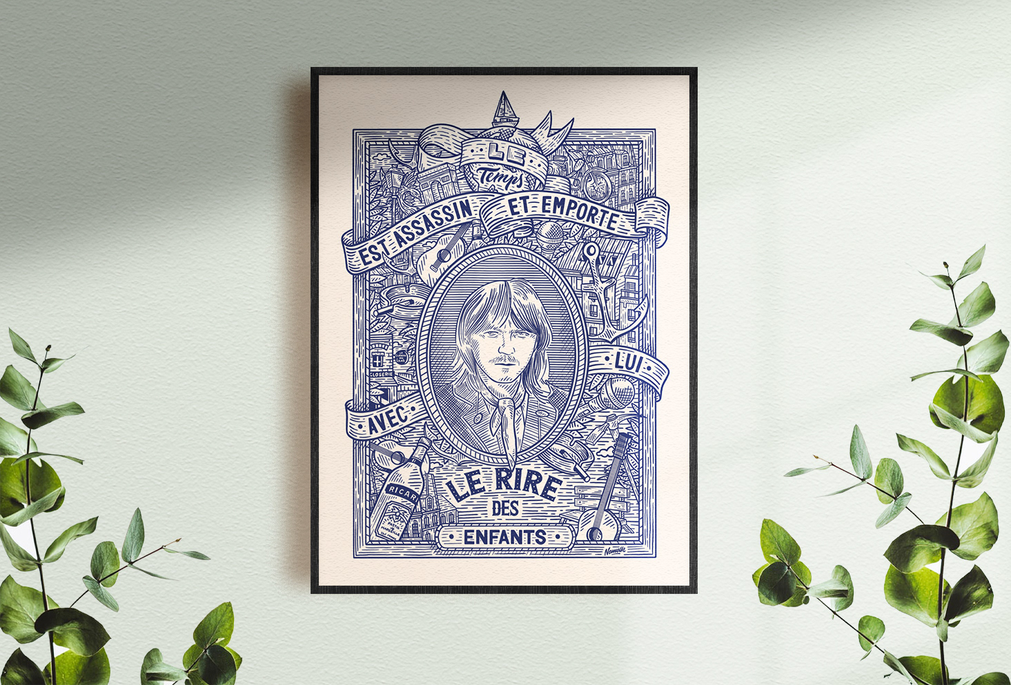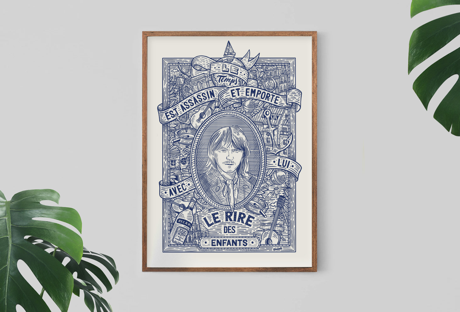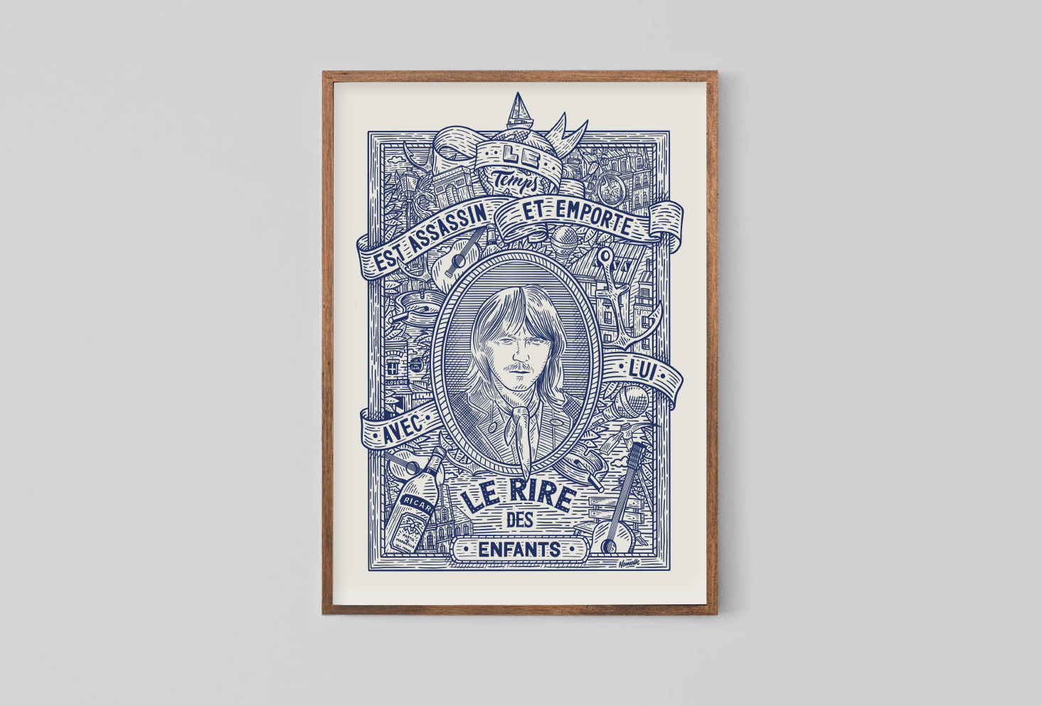 Affiche à l’effigie de Renaud mettant en scène la chanson "Mistral gagnant" - Format 40x30 cm - Papier 170g couché brillant Les affiches sont envoyées dans des tubes d’expédition en carton. Livraison par Mondial Relay (Cadre non inclus)