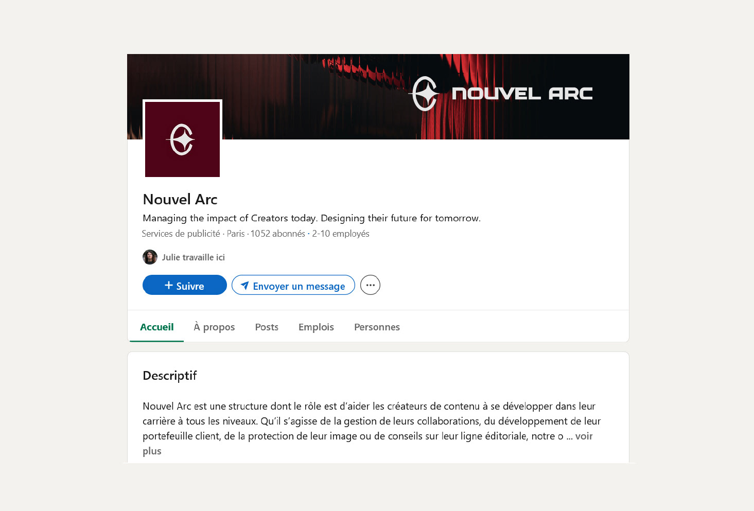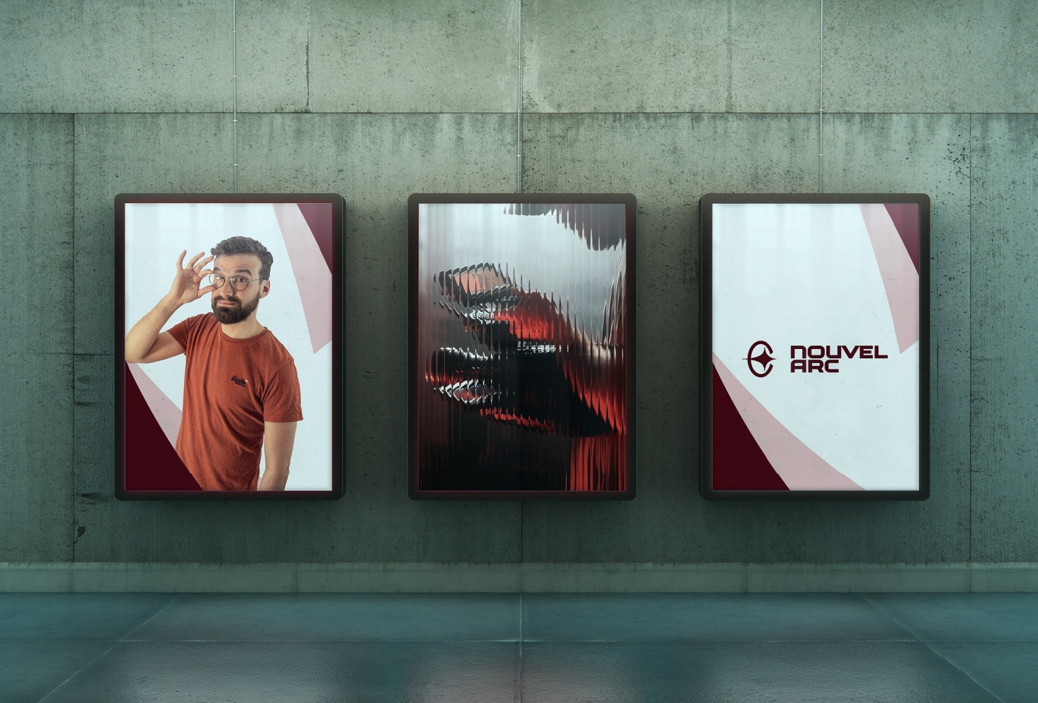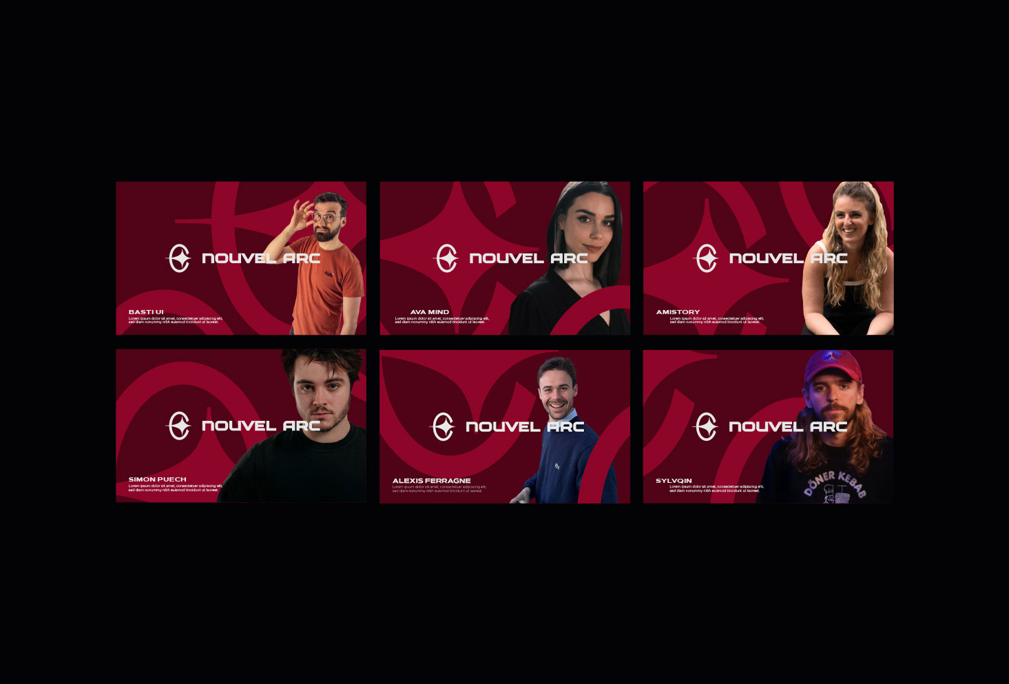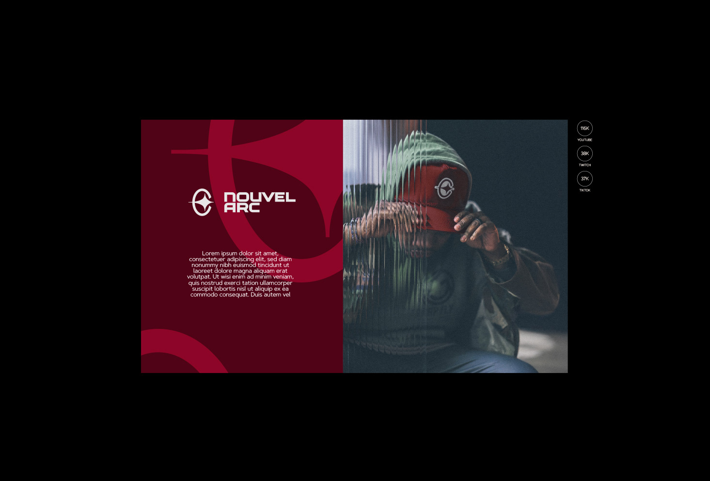 Création de l'integralité de l'identité visuelle et de la charte graphique de Nouvel Arc. Nouvel Arc est une structure dont le rôle est d'accompagner une poignée de créateurs de contenu dans le développement et la pérennisation de leur carrière à tous les niveaux.