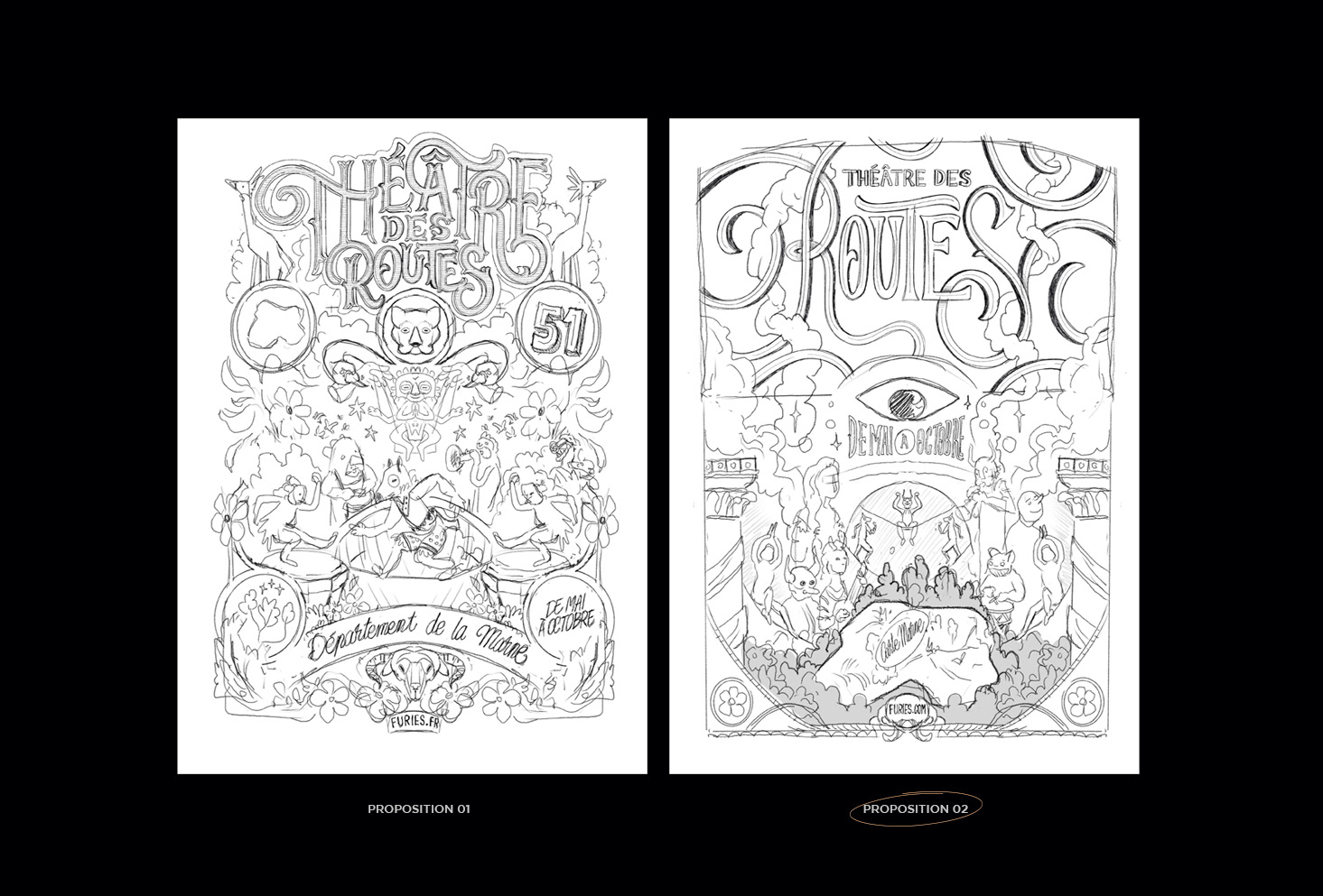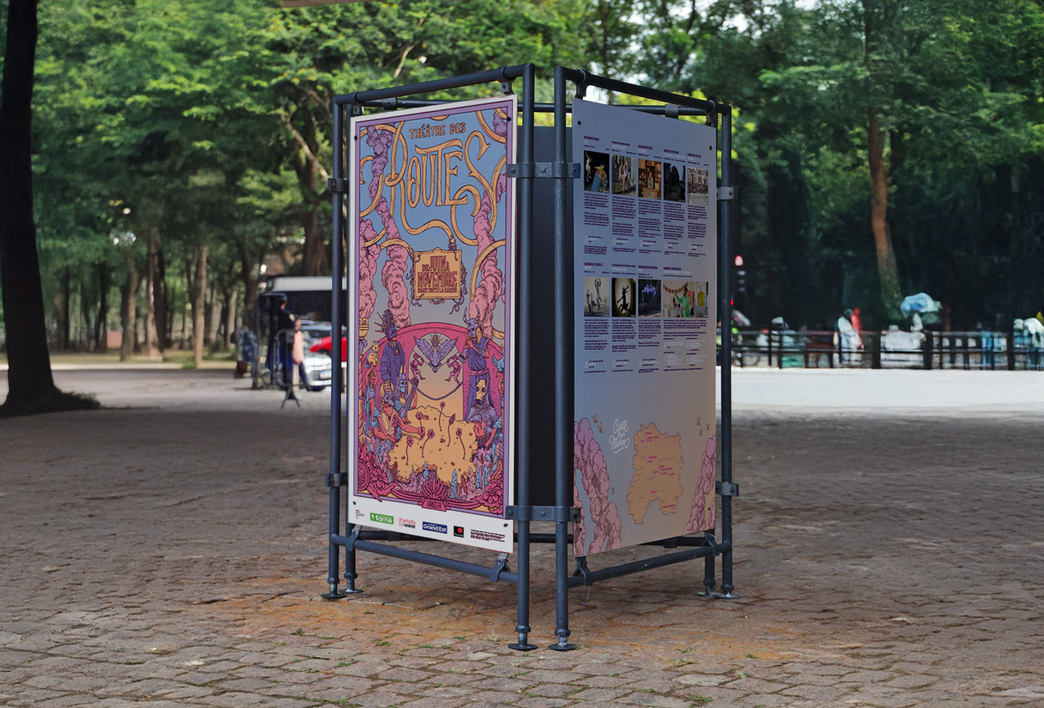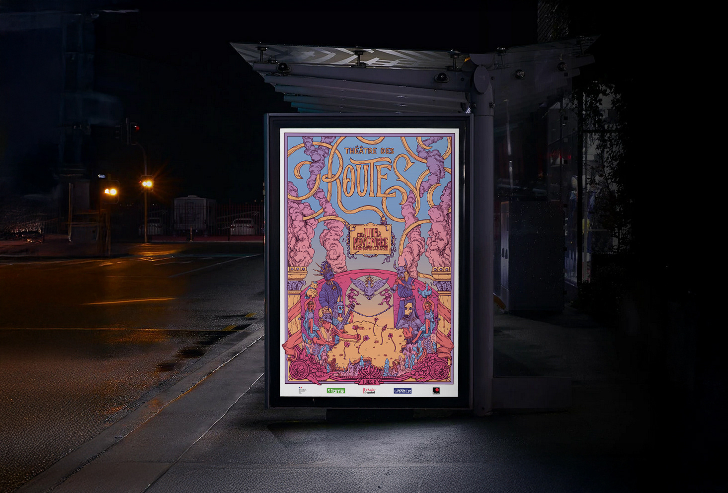 Création de l’affiche du Théâtre des Routes, un projet porté par Furies depuis 2005. Cette aventure artistique itinérante investit l’espace public à travers le territoire, proposant des spectacles accessibles à tous, de mai à octobre.